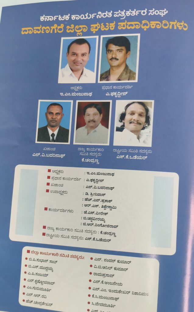 ದಾವಣಗೆರೆ:ದಾವಣಗೆರೆ ಜಿಲ್ಲೆಯ ಕರ್ನಾಟಕ ಕಾರ್ಯನಿರತ ಪತ್ರಕರ್ತರ ಸಂಘದ ಸರ್ವಸದಸ್ಯ ಸ್ನೇಹಿತರುಗಳಲ್ಲಿ ಈ ಮೂಲಕ ಮನವಿ ಮಾಡಿಕೊಳ್ಳುವುದೇನಂದರೆ.