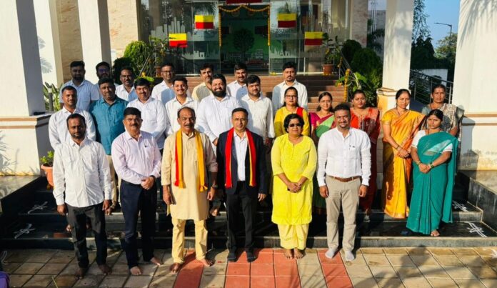 ದಾವಣಗೆರೆ, ನ.೧- ದಾವಣಗೆರೆ ಸ್ಮಾರ್ಟ್ ಸಿಟಿ ಕಛೇರಿಯಲ್ಲಿ ಭುವನೇಶ್ವರಿ ದೇವಿಗೆ ಪೂಜೆ ಸಲ್ಲಿಸಿ ಧ್ವಜಾರೋಹಣಗೊಳಿಸುವುದರ ಮೂಲಕ ೭0ನೇ ಕನ್ನಡ ರಾಜ್ಯೋತ್ಸವನ್ನು ನಡೆಸಲಾಯಿತು.