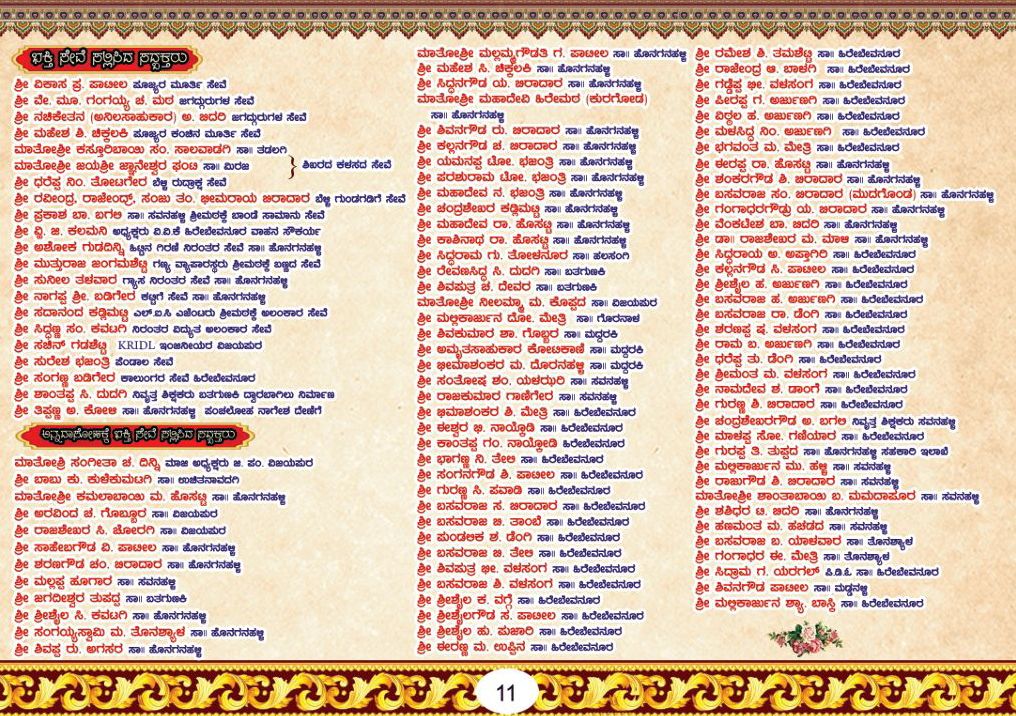 ಪ್ರಸಾದ ಸೇವೆ : ಶ್ರೀ ಈರಪ್ಪ ರಾ. ಹೊಸೆಟ್ಟಿ ನಿವೃತ್ತ PWD ಅಧಿಕಾರಿಗಳು ವಿಜಯಪುರ (ಹೊನಗನಹಳ್ಳಿ)ನಿರೂಪಣೆ :ಶ್ರೀ ಎಮ್. ಜಿ. ಮಸಣ ಶಿಕ್ಷಕರು, ಶ್ರೀ ಶಿವರಾಯ ಆದರಿ ಸಮಾಜ ಸೇವಕರು.ಹಾಗೂ ಸ್ವಾಗತ : ಶ್ರೀ ಬಸವರಾಜ ಗಾಣಿಗೇರ ಕಲಾವಿದರು.