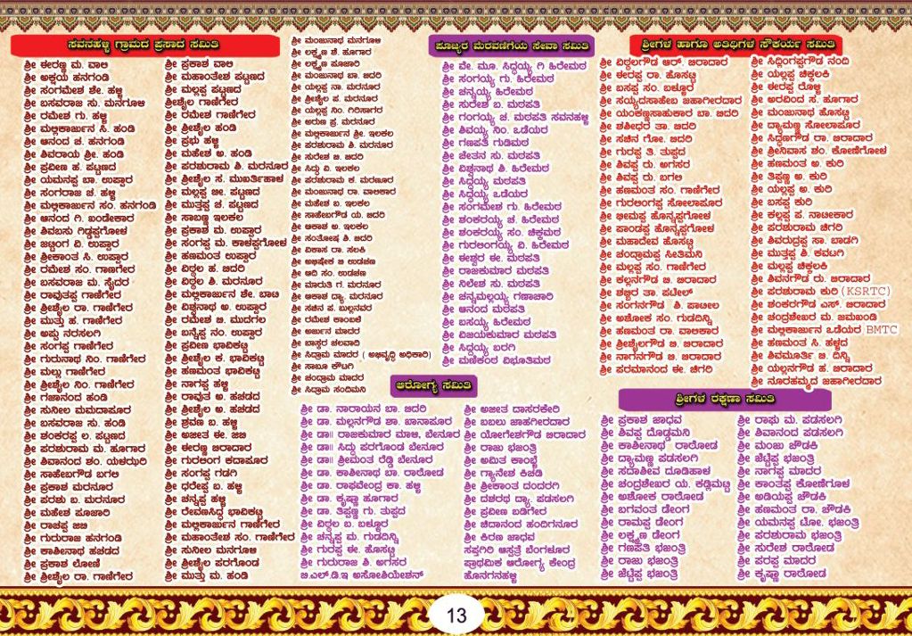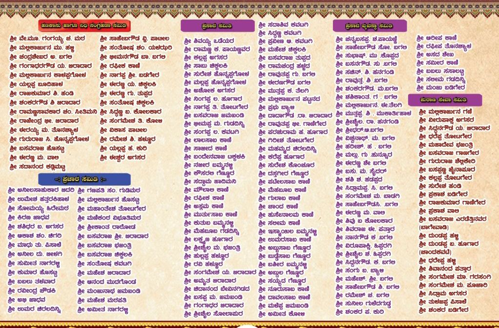 ಪಾವನ ಸಾನಿಧ್ಯ : ಶ್ರೀ ಮ.ನಿ.ಪ್ರ. ಜಗದ್ಗುರು ಅಭಿನವ ಗವಿಸಿದ್ದೇಶ್ವರ ಮಹಾಸ್ವಾಮಿಗಳು ಶ್ರೀ ಗವಿಸಿದ್ಧೇಶ್ವರ ಮಠ ಕೊಪ್ಪಳ. ನೇತೃತ್ವ :ಶ್ರೀ ಮ.ನಿ.ಪ್ರ. ಡಾ॥ ಮಲ್ಲಿಕಾರ್ಜುನ ಮಹಾಸ್ವಾಮಿಗಳು ಮುರುಘಾಮಠ ಧಾರವಾಡ. ಶ್ರೀ ಮ.ನಿ.ಪ್ರ ಸಿದ್ಧಲಿಂಗ ಮಹಾಸ್ವಾಮಿಗಳು ಶ್ರೀ ಗುರುಲಿಂಗದೇವರಮಠ ನದಿಇಂಗಳಗಾಂವ. ಶ್ರೀ ಷ.ಬ್ರ. ರುದ್ರಮುನಿ ಶಿವಾಚಾರ್ಯರು ಕಲ್ಯಾಣಮಠ ಗಿರಿಸಾಗರ. ಶ್ರೀ ಷ.ಬ್ರ. ಮುರುಕೇಂದ್ರ ಶಿವಾಚಾರ್ಯರು ಹಿರೇಮಠ ಶಿರಶ್ಯಾಡ.